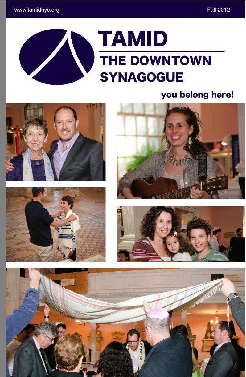 We’re excited to present our first program guide which shows our unique approach to synagogue life. At Tamid, we see prayer and learning as the inspiration for goodness in the world. You’ll see that organizational friendships are core to who we are and we’re thrilled to announce partnerships with the JCC in Manhattan, The Educational Alliance, The American Jewish World Service, and The Jewish Lens. Alliances are our gateway to Head Start, Project ORE, the Other Israel Film Festival, International Service projects, and the new AJWS Tzedaka Effort. Thanks to everyone involved in our creating and building our program – it’s going to be a terrific start to our synagogue.  Drop us an email and we’ll send you a printed copy in the mail.