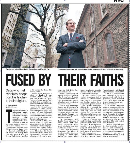 Basketball Dads help Congregation Score Historic Space in Manhattan, June 2, 2017 by Cathryn Prince, Times of Israel. “If Rabbi Darren Levine hadn’t taken his son to shoot hoops nearly before sunrise one day, it’s fair to say that Tamid: The Downtown Synagogue most likely wouldn’t occupy the historic space it does today. . . Read the full article at the Times of Israel.com