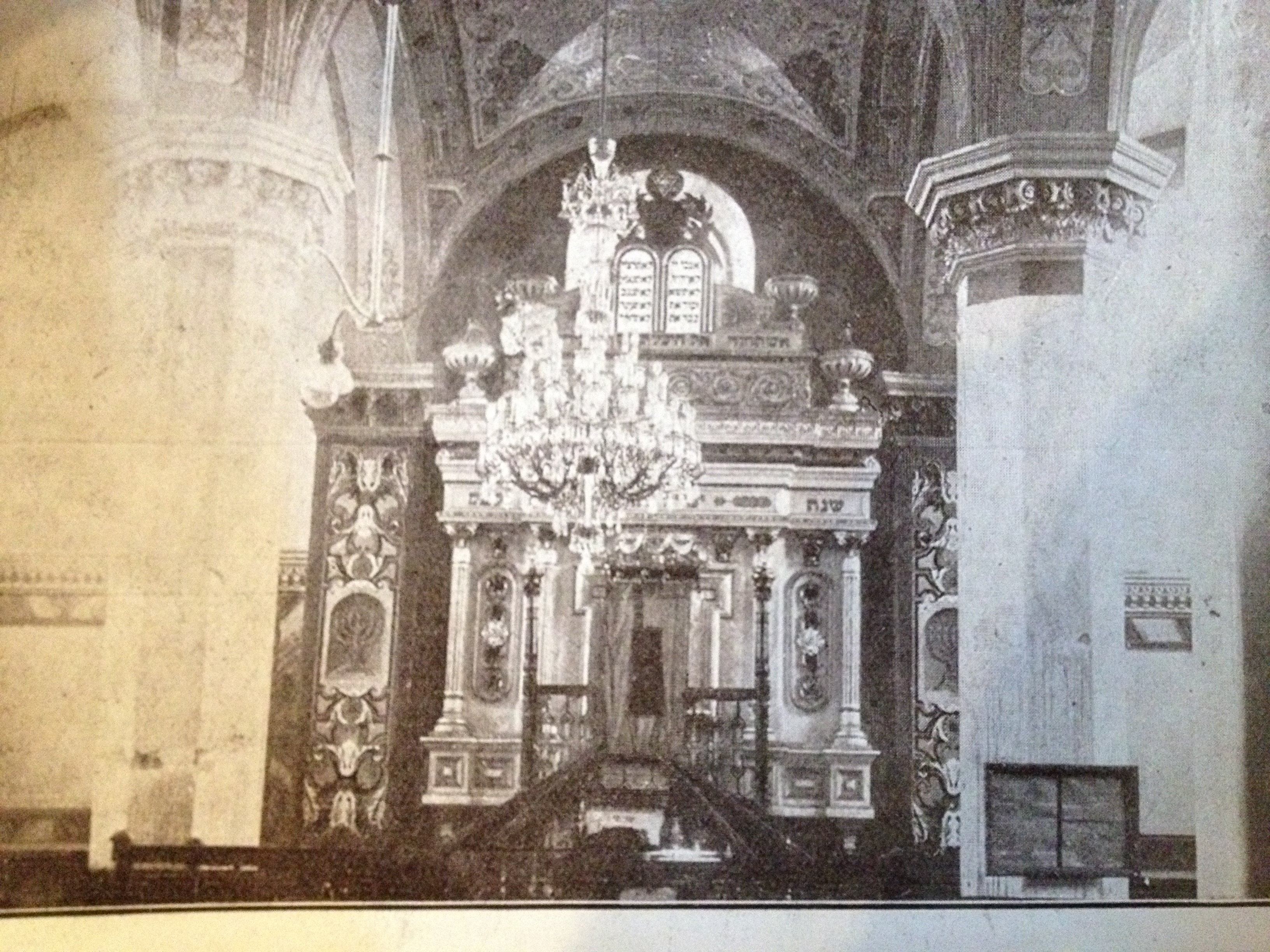 The synagogue in Meseritz Poland was destroyed by the Nazi’s in 1943. But as luck would have it, there is a photograph of the Ark that was in that shul hanging on the wall in the florist shop on the main square.